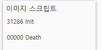 | 14. | 실드(shield) 관련 스크립트가 없는 이미지에게 실드를 준 상태에서 피격을 당한 경우 ( Dtime님 제보) > 실드 애니메이션을 재생해야 하는데 관련 스크립트가 없어서 오류 발생하는 걸로 추정, 아래의 이미지와 같이 스크립트 내에 Init, Death 2개 밖에 없는 케이스가 해당 ![]() |