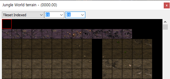 | 2. | Terrain Palette에서 Tilset Indexed의 제일 첫번째 검은 지형(0,0)을 사용한 경우![]() |